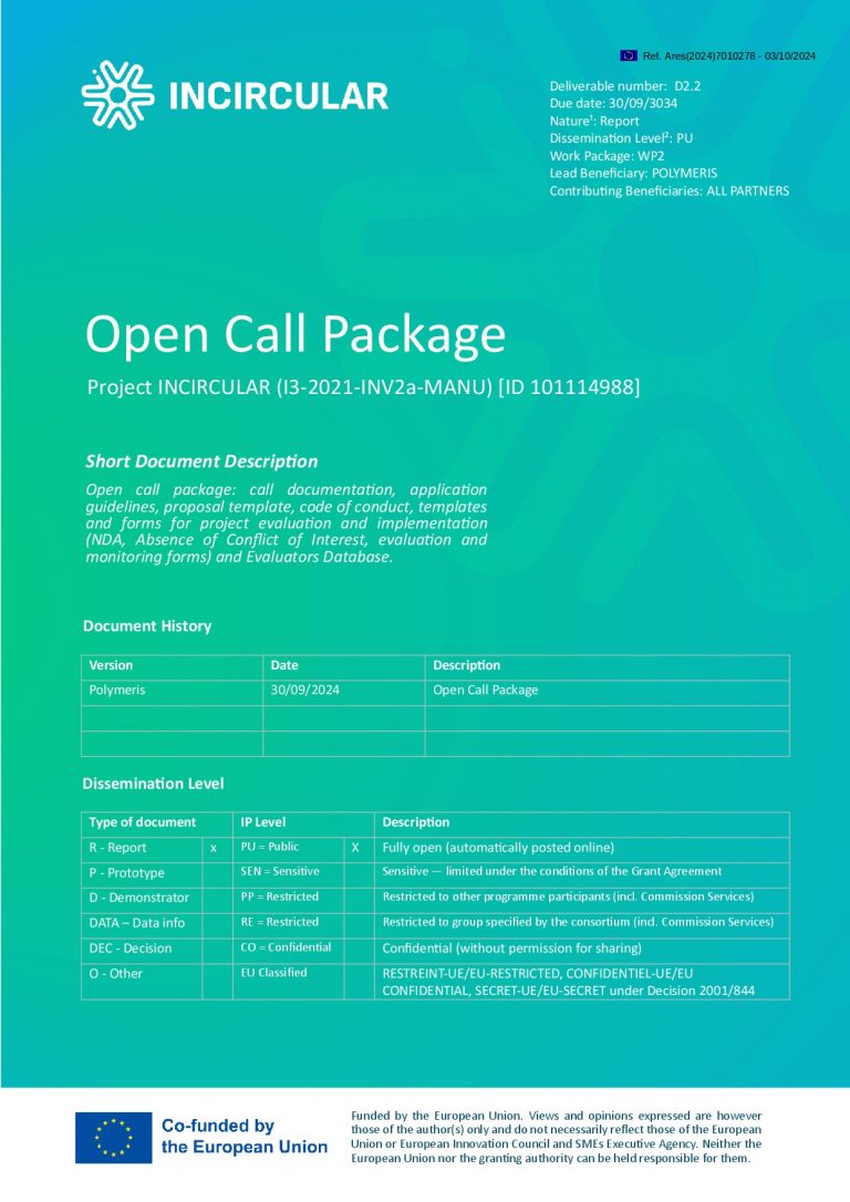 Open call package: call documentation, application guidelines, proposal template, code of conduct, templates and forms for project evaluation and implementation (NDA, Absence of Conflict of Interest, evaluation and monitoring forms) and Evaluators Database.