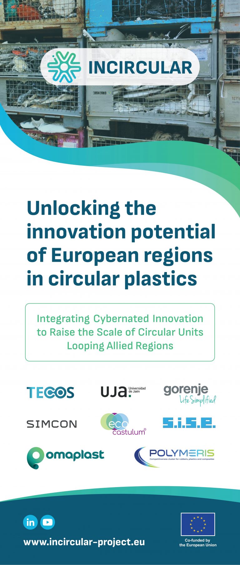 This roll-up is designed with key information and is visually appealing for use at events presenting the INCIRCULAR project.